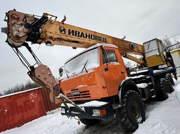 Автокран на базе КамАз 43118, максимальный вылет стрелы 21, 7 м, грузоподъемность 25 тонн, Ивановец.